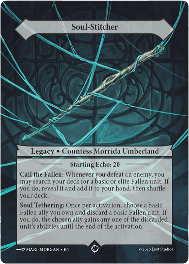 Morrida’s Legacy, the Soul-Stitcher, was much like her: misunderstood, complex, and unfathomably powerful. In her hands, it weaved Liastrum and the Anushamatra together in a new, beautiful technique, binding long-dead spirits and empty corpses into one.